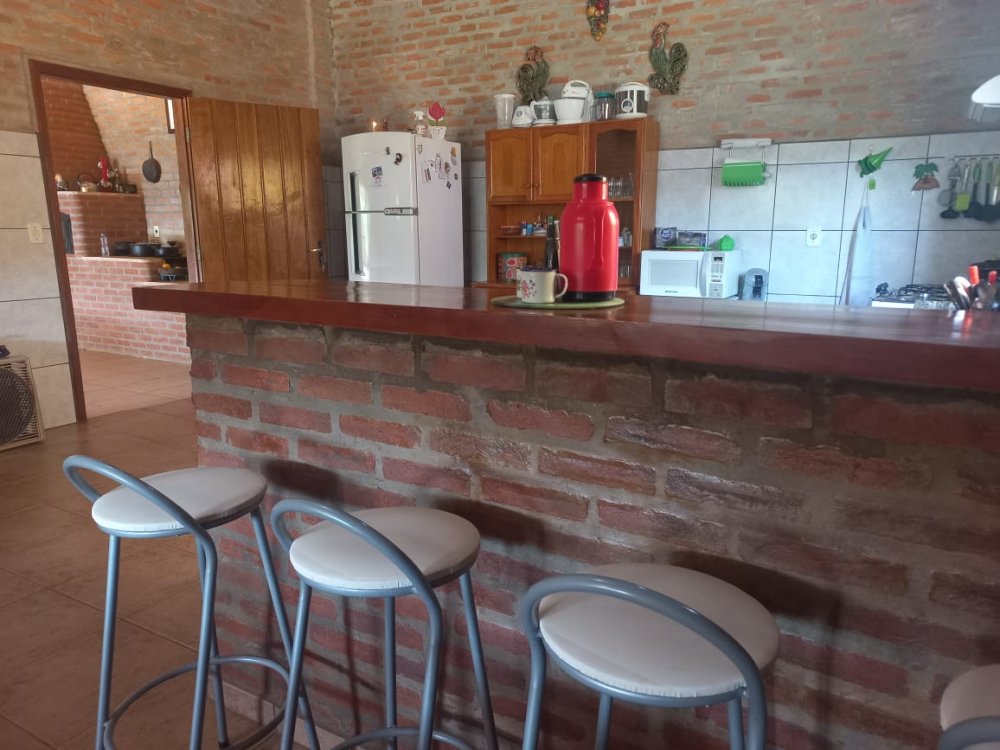 Possui construída uma casa, estilo campo / rústico, com 02 dormitórios , sendo ambos suíte, sala ampla, cozinha , espaçoso salão com espaço gourmet ( churrasqueira, forno e fogão à lenha ), com ampla varanda.
