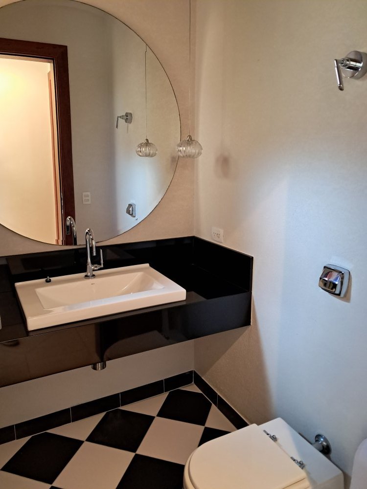 Todas as bancadas de banheiros, cozinha e churrasqueira em granito ou mármore.