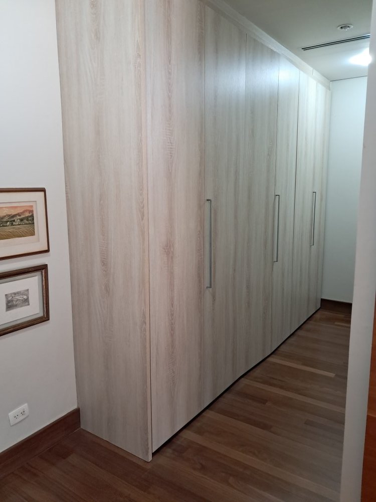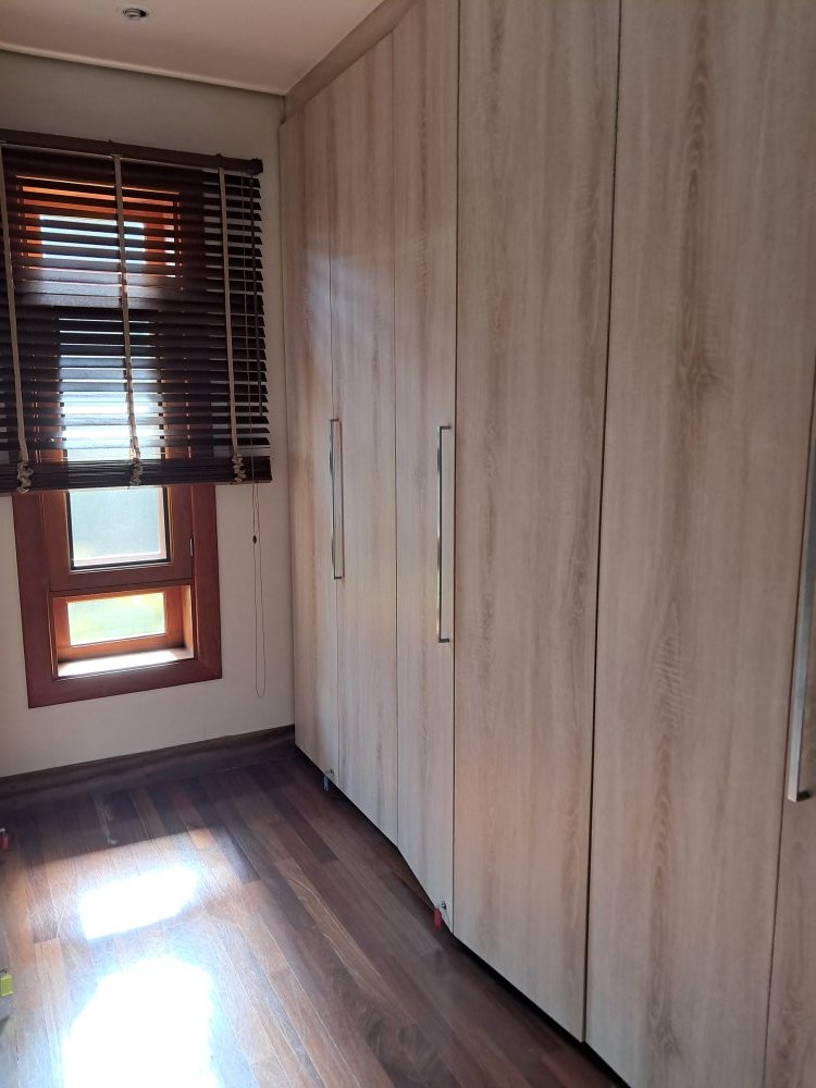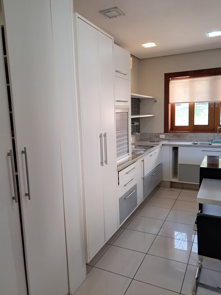 Armários em todas as suítes, cozinha, area de serviço, churrasqueira e sala.