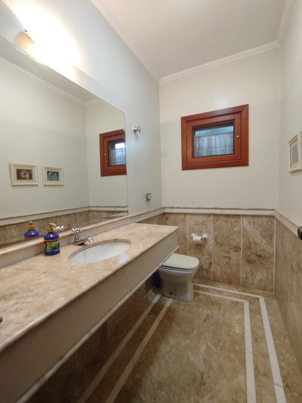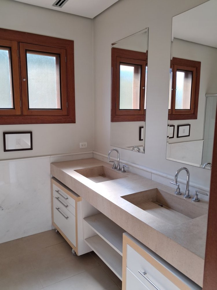 Todas as bancadas de banheiros, cozinha e churrasqueira em granito ou mármore.