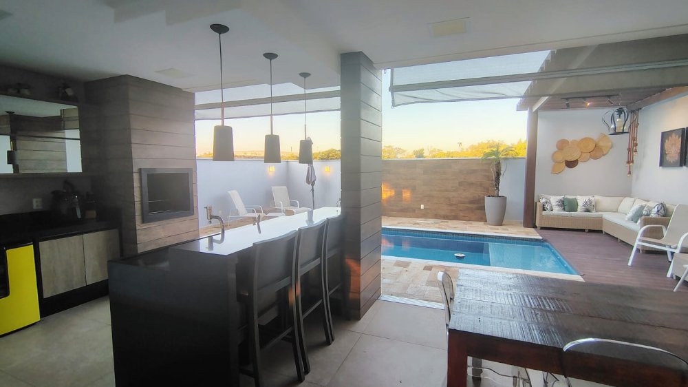 A casa dispõe de 3 suítes espaçosas, perfeitas para o seu descanso e repletas de armários, e 5 banheiros elegantemente projetados. As 2 salas proporcionam ambientes distintos para receber amigos e familiares ou relaxar em um espaço mais íntimo. Um lavabo adicional garante ainda mais praticidade para o seu dia a dia. Aparelhos de ar condicionado . Possui Piscina Aquecida . Geração de energia solar 100% própria = conta de energia elétrica mensal próxima a zero.