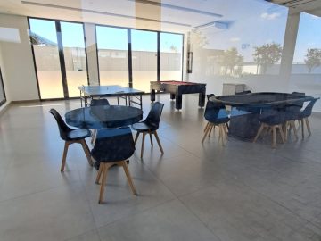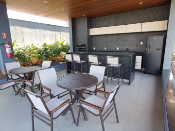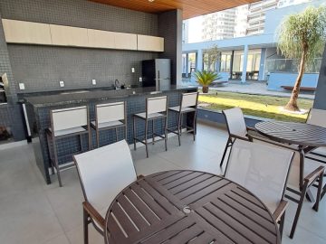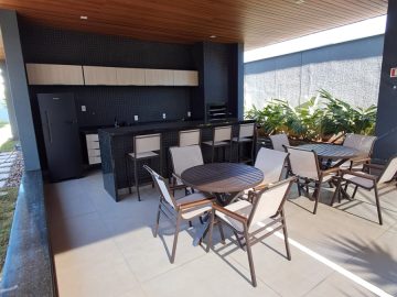 * Lazer: Academia, churrasqueira, espaço gourmet, piscina, playground, quadra poliesportiva, salão de festas e salão de jogos.