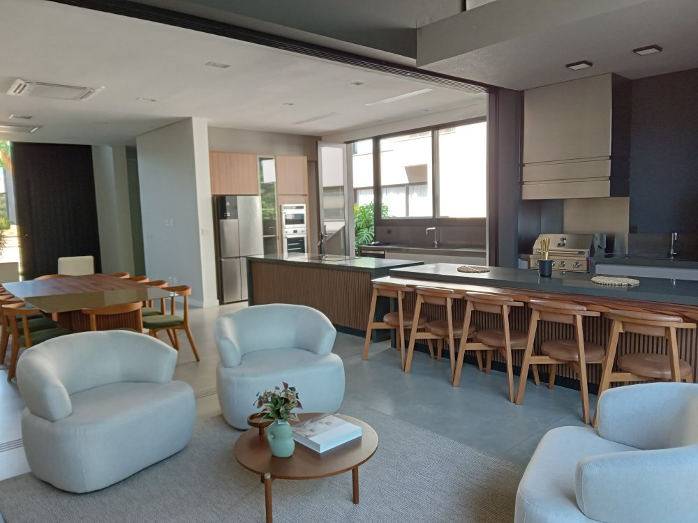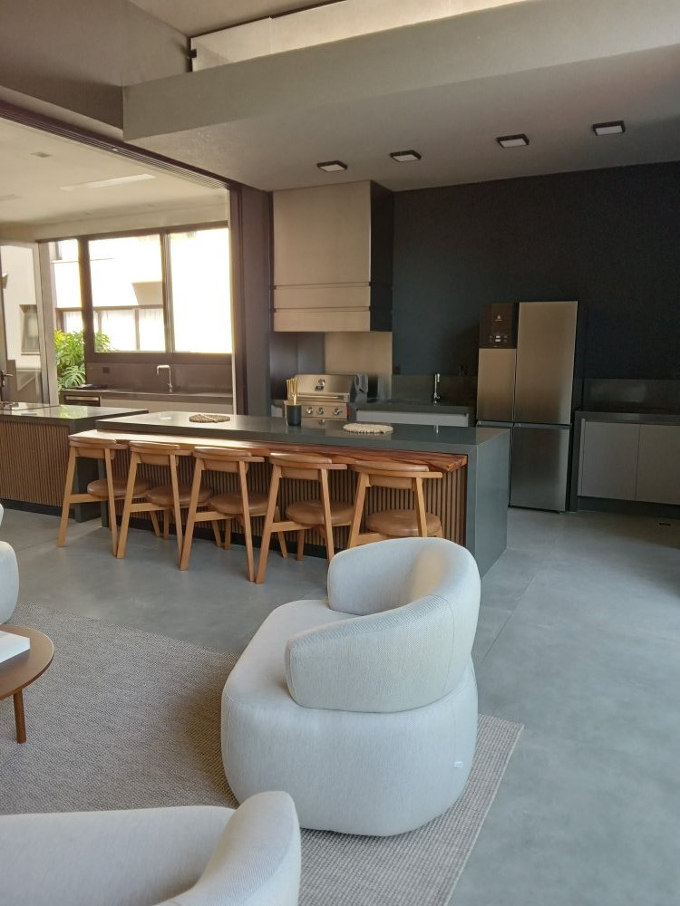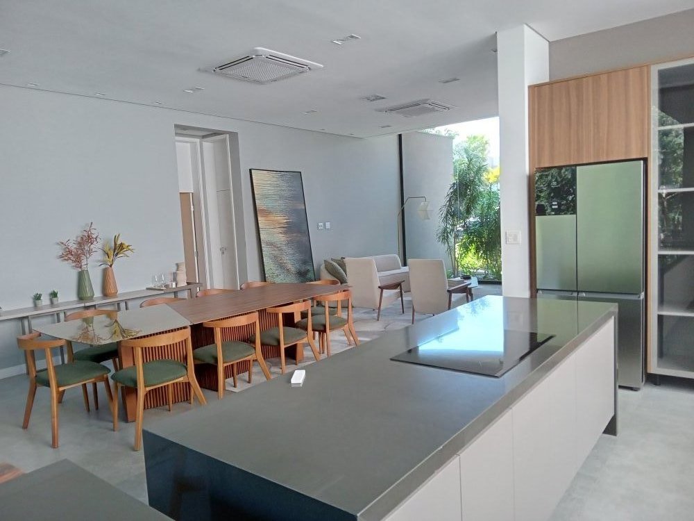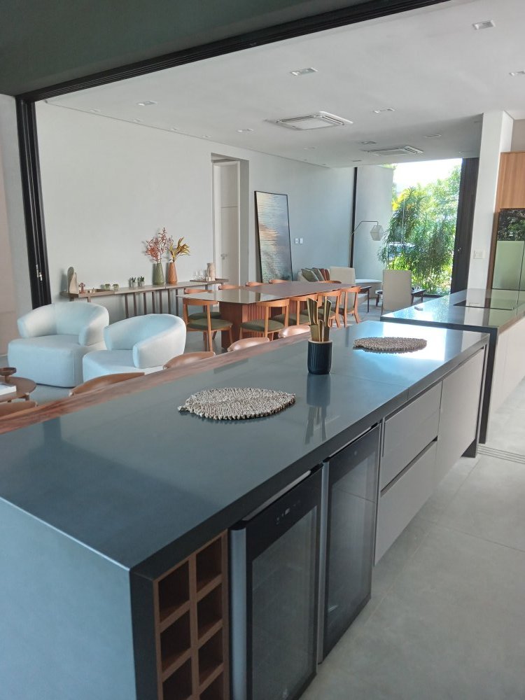 A cozinha americana, integrada aos espaços sociais, é um convite à culinária e à convivência. E para os amantes de carros, a garagem comporta até 4 veículos com segurança e praticidade.